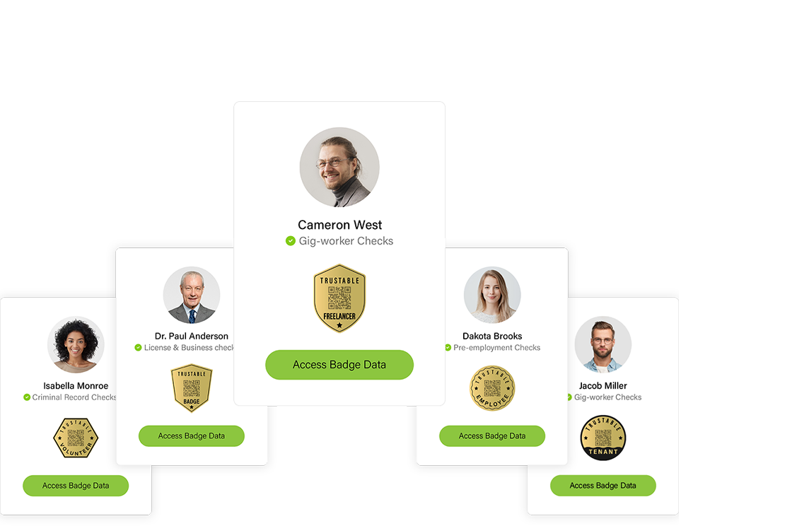 With Trustable Badge, you can easily combine multiple background check results—such as employment, education, criminal history, and licenses—into one verified digital badge. It’s fast, intuitive, and doesn’t require any technical knowledge.